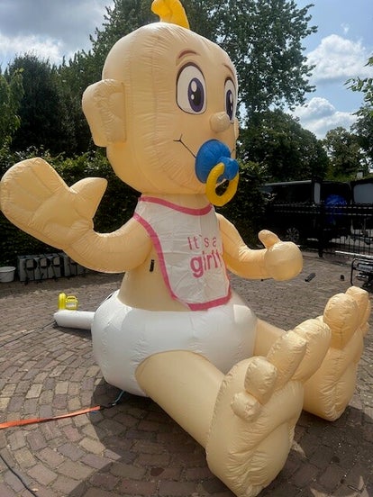 Of je nu kiest voor een opvallende verrassing in de tuin of een feestelijke decoratie bij de ingang: met deze opblaasbare baby huren maak je het moment onvergetelijk.