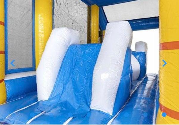 Deze 19 meter lange stormbaan is perfect voor kinderen en volwassenen die wel zin hebben in een wedstrijdje! Wie bereikt als eerste de overkant van deze opblaasbare hindernisbaan? Kruip, ren, spring, klim en glijd over het dubbele parcours in Rollercoaster thema. Met deze stormbaan wordt elke verjaardag, buurtfeest, sportdag of bedrijfsuitje één groot feest!